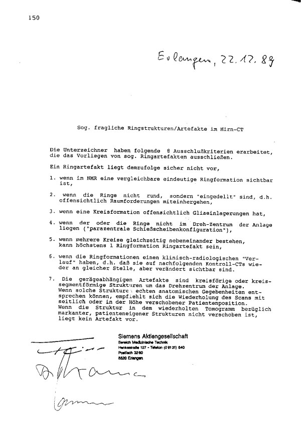 Германише Хайлькунде - фирма Siemens об артефактах в КТ